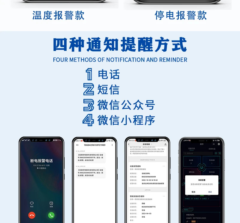 ☆电话通知,短信息提醒、微信公众号推送报警信息。